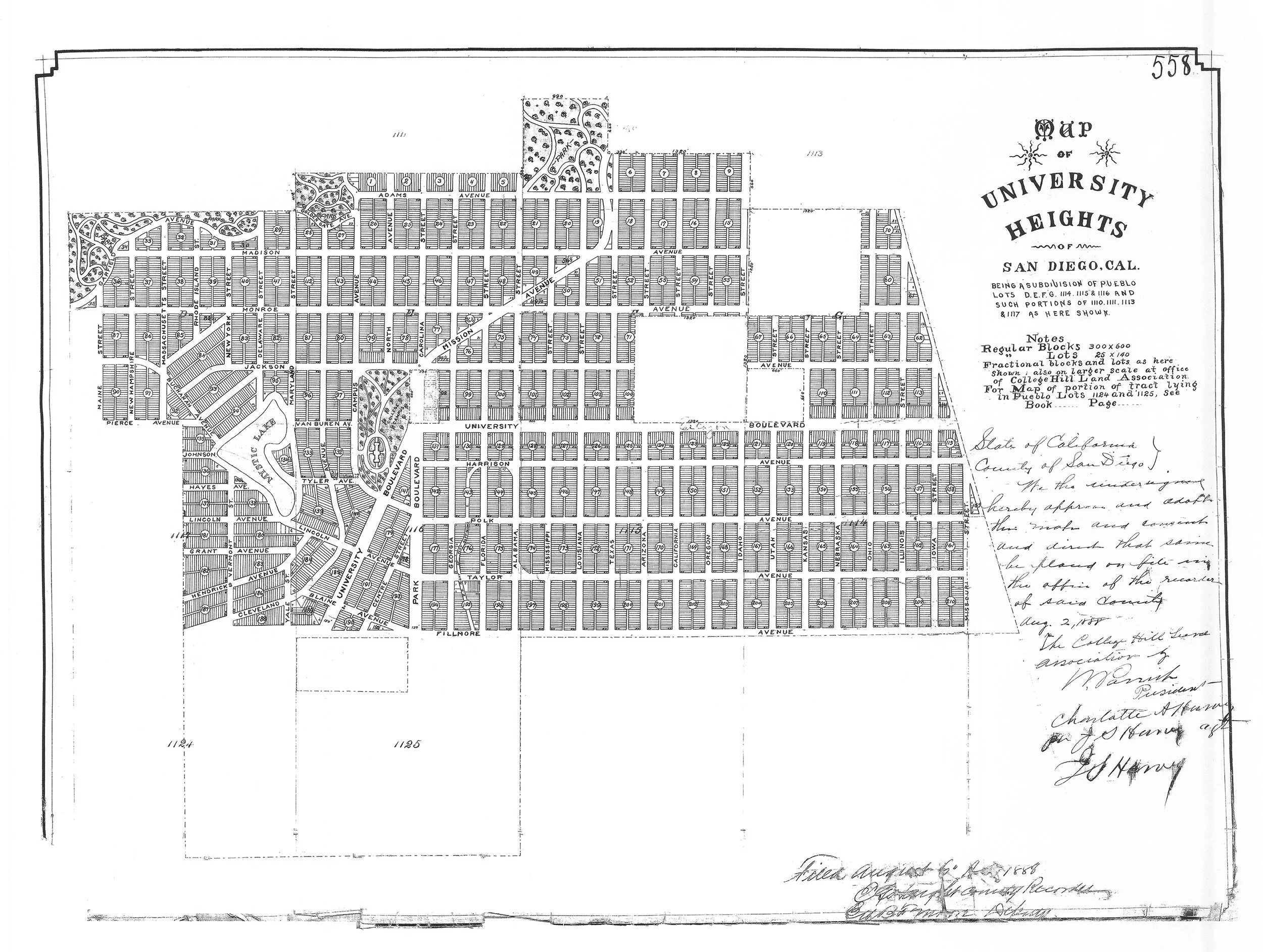 University Heights Subdivision Map 558, filed August 6, 1888