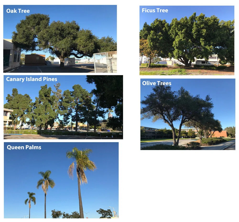 Several Canary Island Pines, also likely from the later mid-century development of Horace Mann Junior High School and the Alice Birney Elementary schools and associated with Jane Minshall.